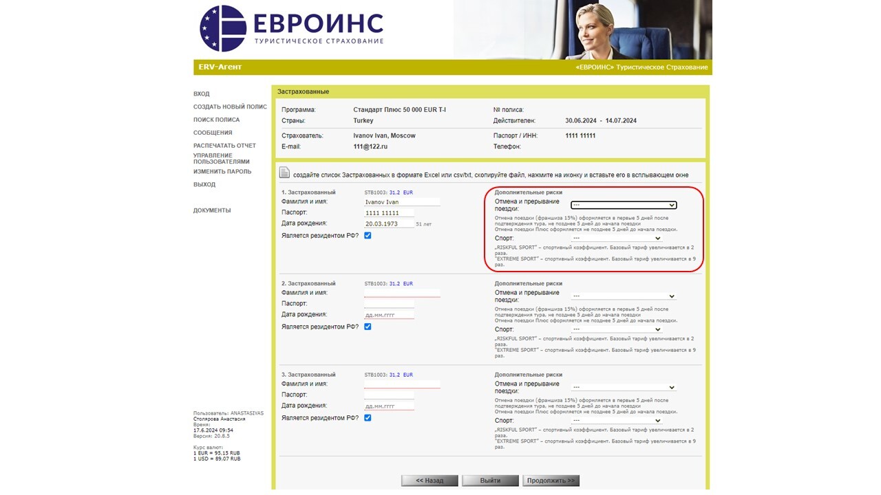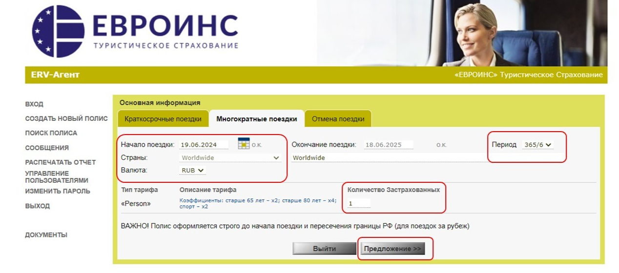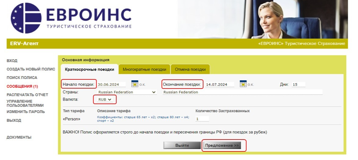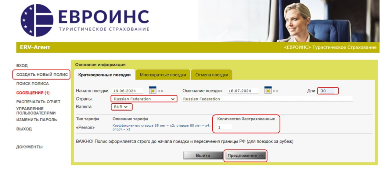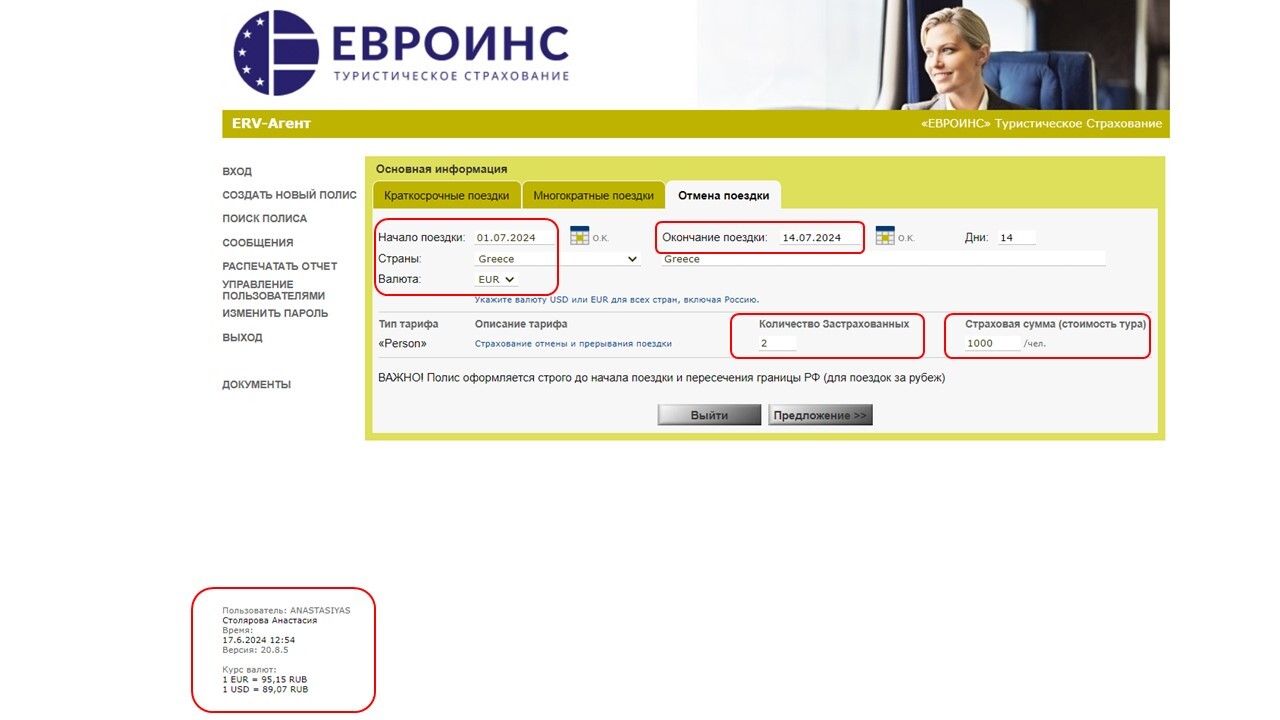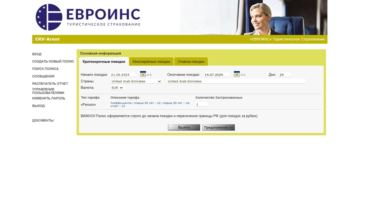 Для создания полиса по программе «Отмена поездки» или «Отмена поездки Плюс» необходимо: