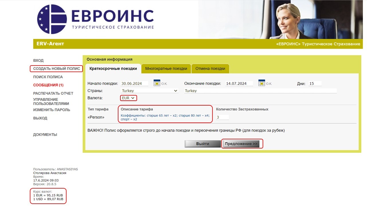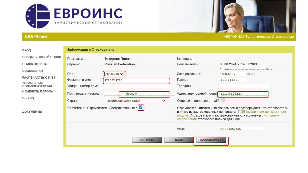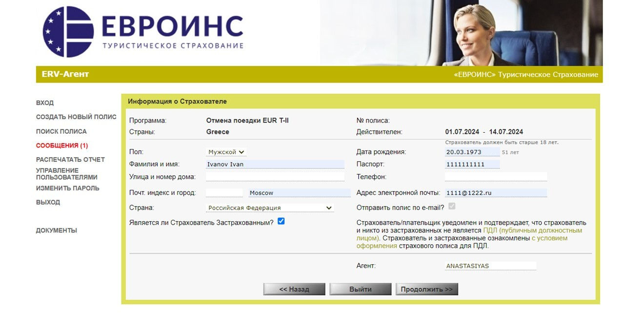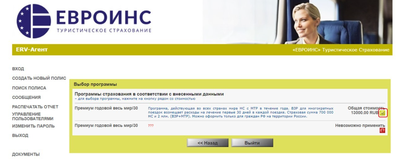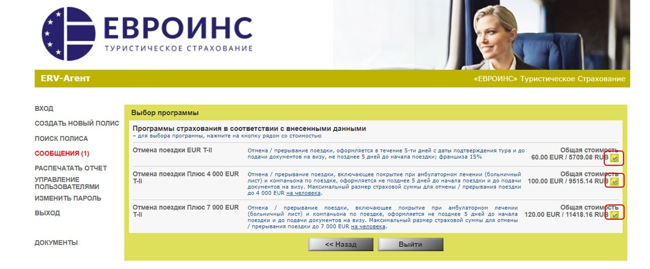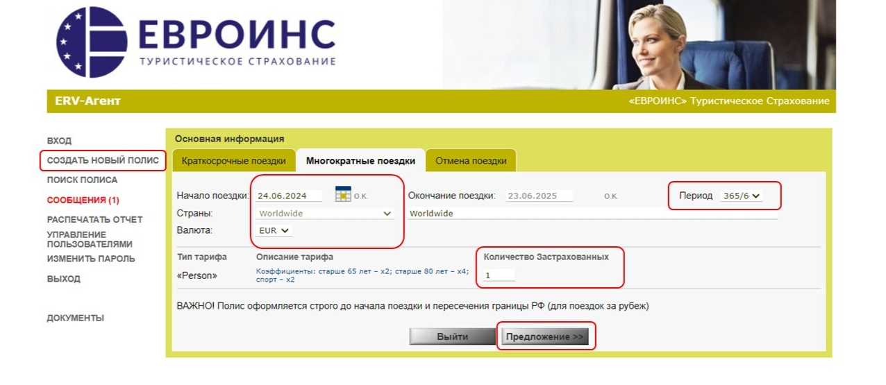 Для создания полиса по программе «Отмена поездки» или «Отмена поездки Плюс» необходимо: