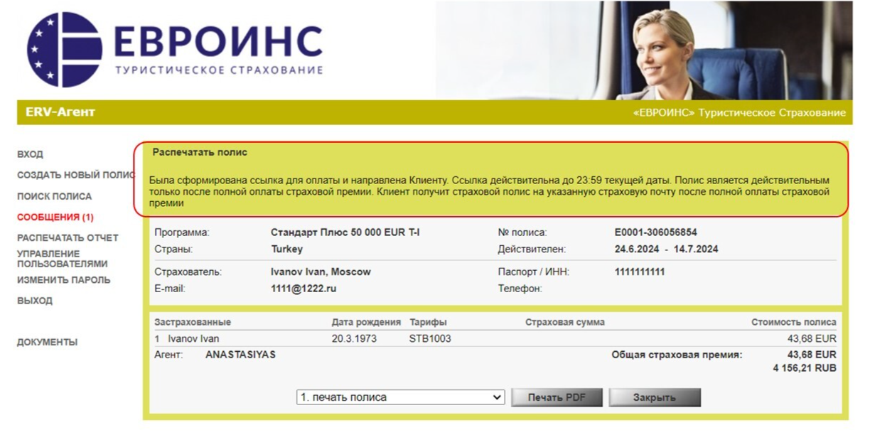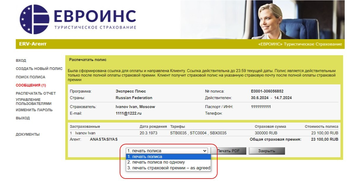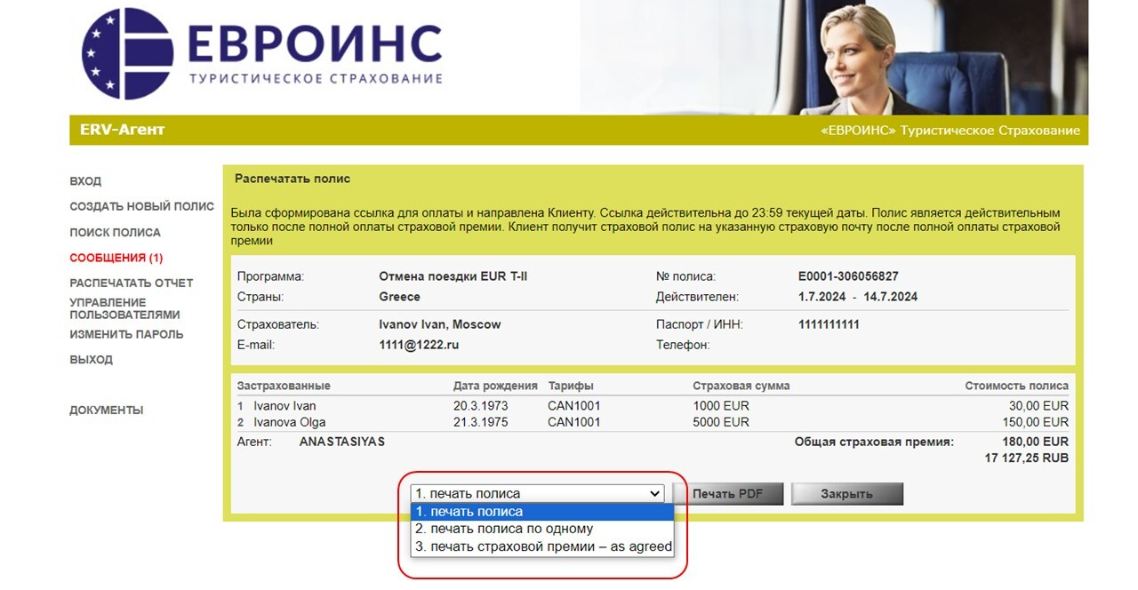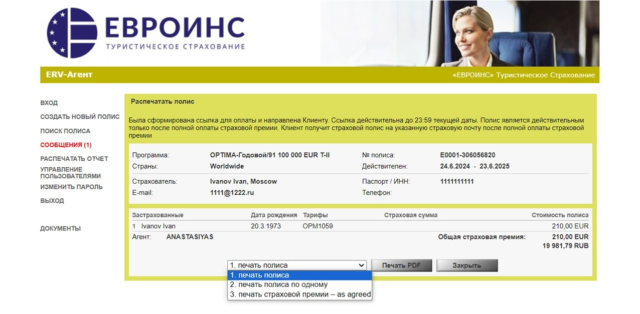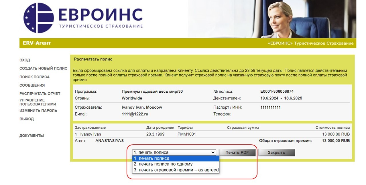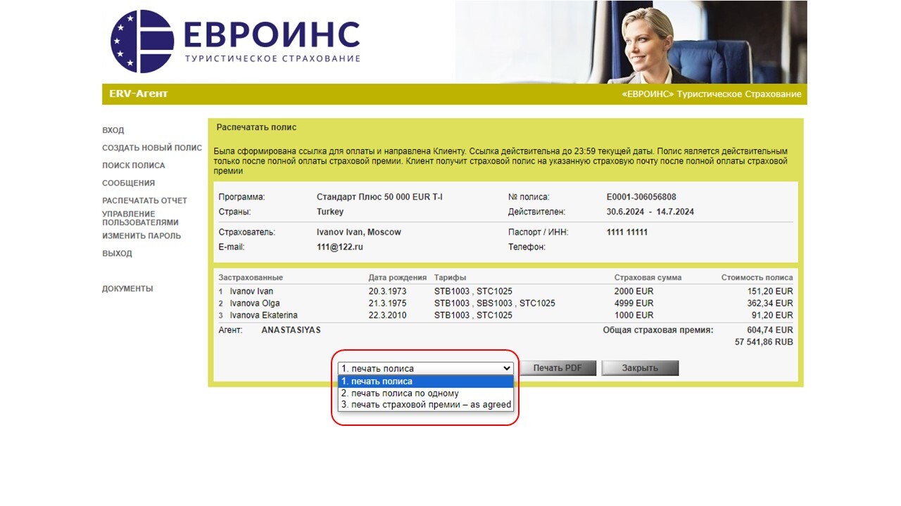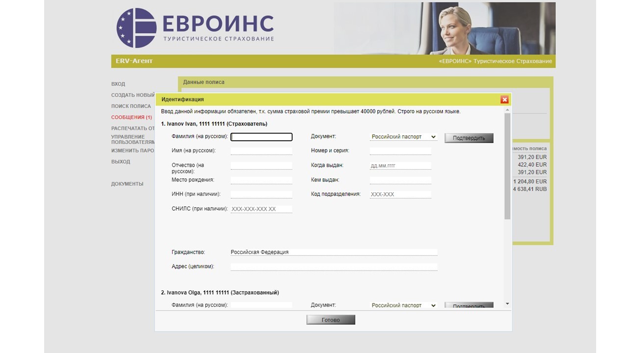 Обращаем Ваше внимание, что номер полиса у всех Застрахованных будет один и Страхователь (плательщик), будет отражен в каждом полисе, независимо от того, участвует он в поездке или нет.