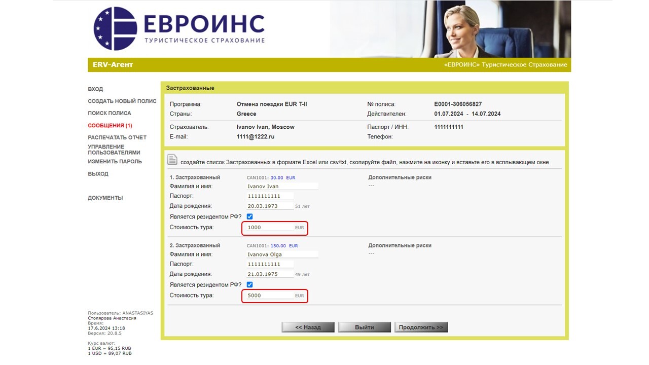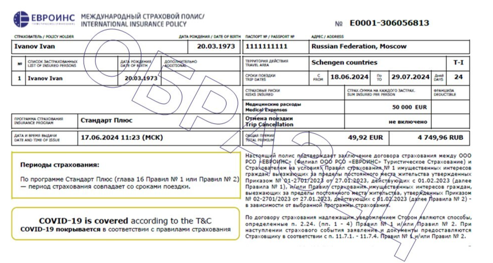 Предварительная стоимость указана на ВСЕХ Застрахованных и на ВЕСЬ период поездки.