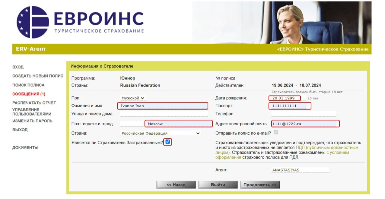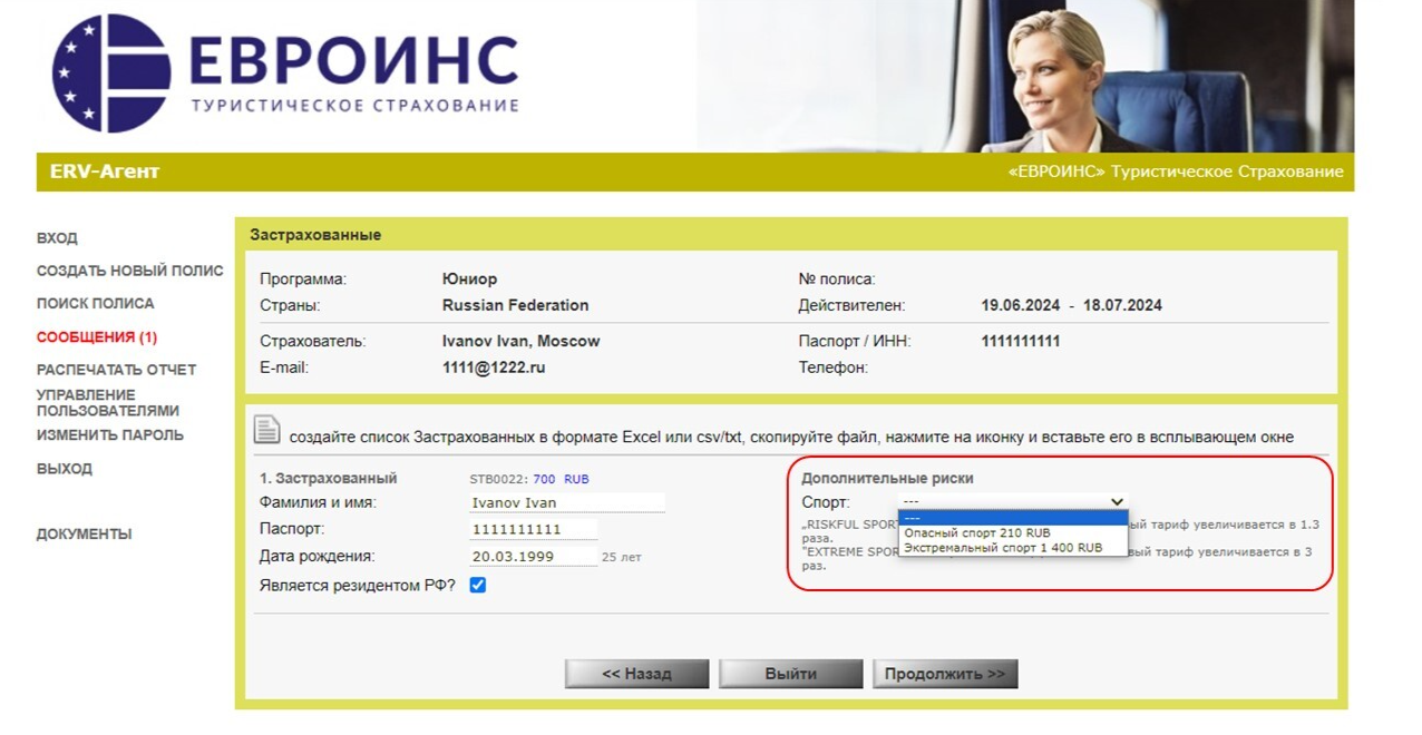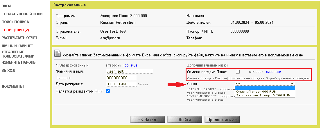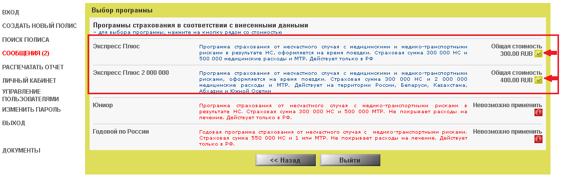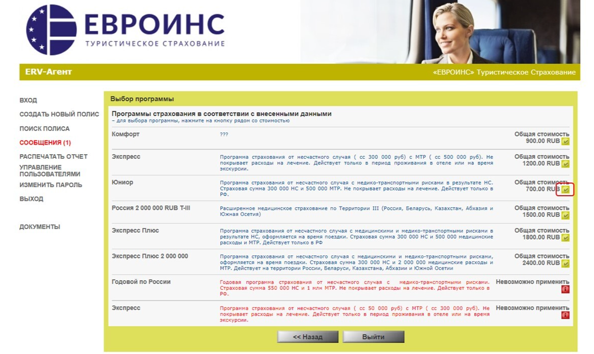 Для формирования полиса по программам «Юниор» или «Годовой по России» необходимо: