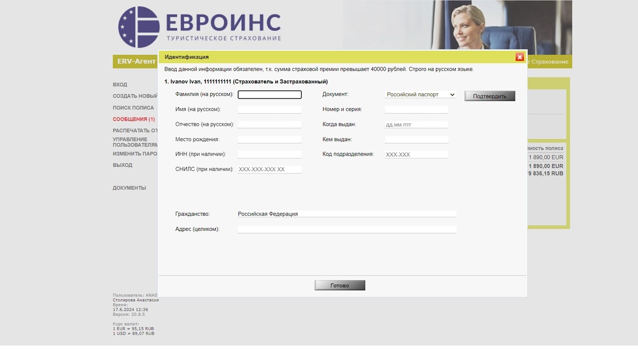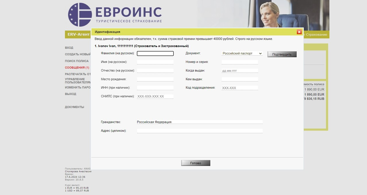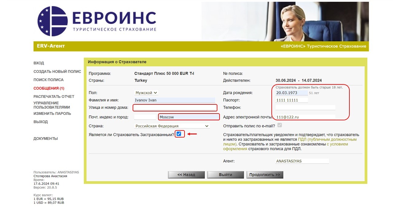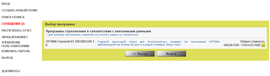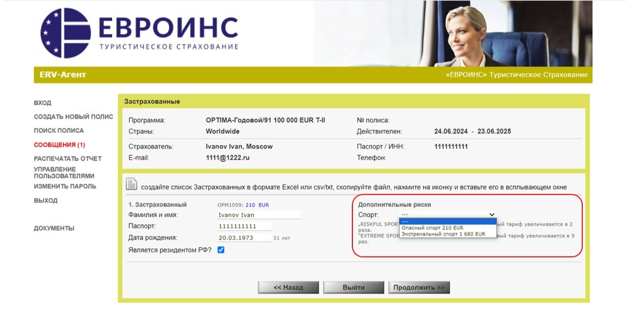 Для формирования полиса по программам «Юниор» или «Годовой по России» необходимо:
